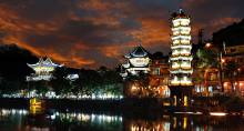 下午安排:乘車赴【芙蓉古鎮(zhèn)】(贈送門票、景區(qū)環(huán)保車和酉水畫廊已含),山水如畫,多情的酉水養(yǎng)育了世世代代的土家兒女,也造就了沿岸動人的風光,酉水畫廊納含著芙蓉鎮(zhèn)的草木、山水、人兒,一道道美麗的彩虹是它編織的最美西蘭卡普。這里得酉水舟楫之便,上通川渝,下達洞庭,素有“楚蜀通津”之稱。因謝晉執(zhí)導,劉曉慶、姜文主演的電影《芙蓉鎮(zhèn)》在此取景而出名,于是人們便把此地叫做芙蓉鎮(zhèn)。時代變遷,歷久彌新,更因其獨特的原始人文,靜謐山水成為新時代湖南旅游新寵。芙蓉古鎮(zhèn)大瀑布,酉水碼頭繁華依舊!乘車赴神秘湘西深處鳳凰古城,這里被譽為遠去的家園,夢中的故鄉(xiāng),邂逅邊城的燈火闌珊,品味獨特的夢里苗疆。游覽被新西蘭著名作家路易艾黎稱贊為中國最美麗的小城--【鳳凰古城】,體驗和感受鳳凰古城的九大精華:一座青山抱古城、一泓沱水繞城過、一條紅紅石板街、一道風雨古城墻、一座雄偉古城樓、一個美麗彩虹橋、一排小橋吊腳樓、一批聞名世界的人、一個國家級非遺文化遺產!