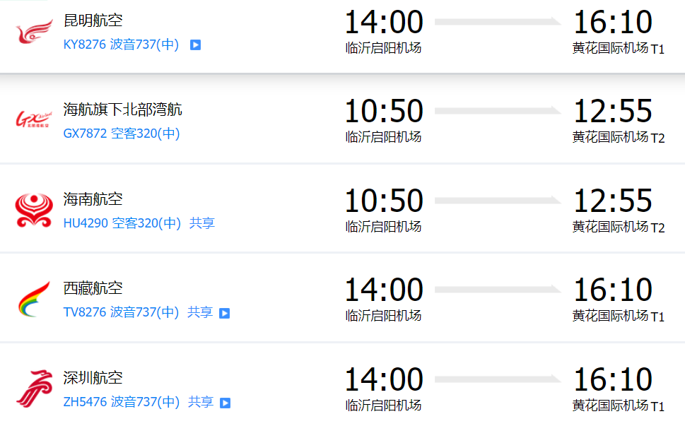 臨沂啟陽機(jī)場(chǎng)有直達(dá)湖南長沙黃花機(jī)場(chǎng),但沒有直達(dá)張家界荷花機(jī)場(chǎng)航班,以下是啟陽到黃花參考: