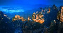 有景點110處,既有造型獨特的山峰與危崖,又有流翠滾玉一般溪流與飛瀑:既有以前窩藏土匪的“歪嘴巖”,又有奇絕難攀的“鬼愁寨”:還有“馬蹄巖”、“猿愁攀”、“天波府”、“姐妹灣”等許多奇景,真是寫不盡,看不完。這里還要特別提到“宗保峰”、“六郎峰”、“佘太君”、“楊家界”,這些名字是什么意思?原來這楊家界的一些山名,都是楊家將子孫后代為紀(jì)念楊家將而取的地名,一千多年來,一直沿襲未改,所以來楊家界游覽,不僅可以飽覽這里的原始風(fēng)光,同時還可以替楊家尋祖問根,繼承并發(fā)揚愛國忠良的遺風(fēng)。