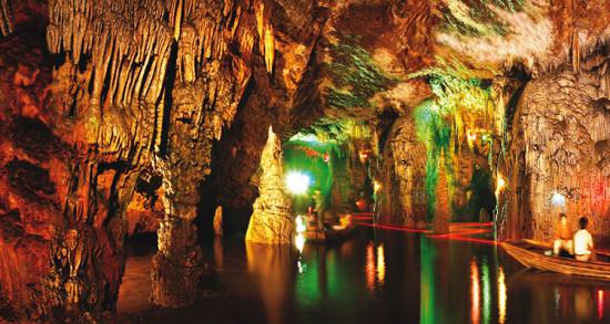 九天洞九天洞總面積250多萬平方米,折合4萬多畝。這樣一個(gè)大溶洞,比堪稱世界第一洞的利川溶洞還大3倍。據(jù)《環(huán)球天然奇觀》一書介紹,南斯拉夫的波斯托伊納大巖洞與美國(guó)的巴哈馬大藍(lán)洞,都稱為"世界上最大的洞",還有古巴的貝拉雅馬爾大巖洞與我國(guó)貴州、湖北神農(nóng)架一些溶洞,也都被稱為"世界或中國(guó)最大的溶洞"??墒沁@些溶洞,同九天洞比較,都會(huì)感到遜色不少。1988年,中國(guó)科學(xué)地質(zhì)研究所巖溶與地下水研究室主任張壽越教授兩次來九天洞考察,他認(rèn)為該洞是亞洲第一大洞,于是他給九天洞題詞:"滴石鑄玄女,暗河鏤九天"。1988年9月下旬,來自美國(guó)、英國(guó)與比利時(shí)的15位洞穴專家對(duì)九天洞作深入研究,連續(xù)7天7夜住在洞內(nèi)全面考察。通過考察,他們一致認(rèn)為九天洞是世界奇跡,不僅具有很高的旅游價(jià)值,同時(shí)還有很高的科研價(jià)值。