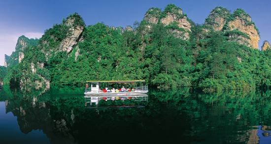 世界自然遺產(chǎn)------寶峰湖:被稱為“世界湖泊經(jīng)典”,地處張家界武陵源風(fēng)景名勝區(qū)的核心地帶,距天子山8KM,距武陵源區(qū)政府1.5KM,距黃龍洞8KM。寶峰湖風(fēng)景區(qū)集山水于一體,融民俗風(fēng)情于一身,尤以奇秀的高峽平湖絕景、“飛流直下三千尺”的寶峰飛瀑、神秘的深山古寺聞名。