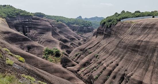 景區(qū)地質(zhì)構造較復雜。區(qū)內(nèi)地貌類型多樣,既有典型的丹霞地貌,又有喀斯特溶洞景觀,公園集紅巖丹霞地貌,溶洞、碧水,溫泉于一體,更兼有古樸人物景觀之襯托。青山、綠水、紅崖赤壁、竹林深深,構成一幅雄、奇、險、秀,美輪美奐的自然畫卷。